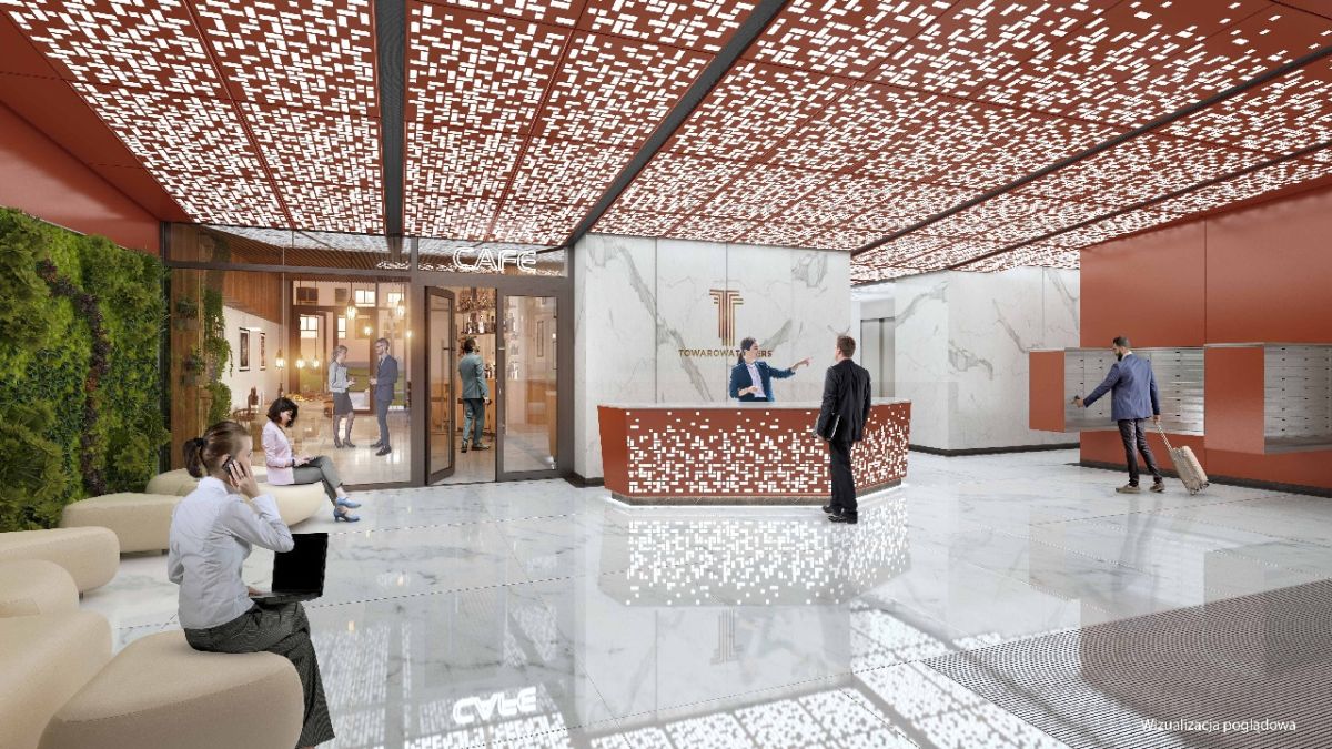 Na terenie wieży do dyspozycji mieszkańców znajdziemy reprezentacyjne lobby z recepcją,